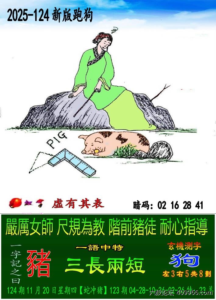 124期新版跑狗一字記之曰:【豬】 玄機測字:《狗》 一語中特:三長兩短