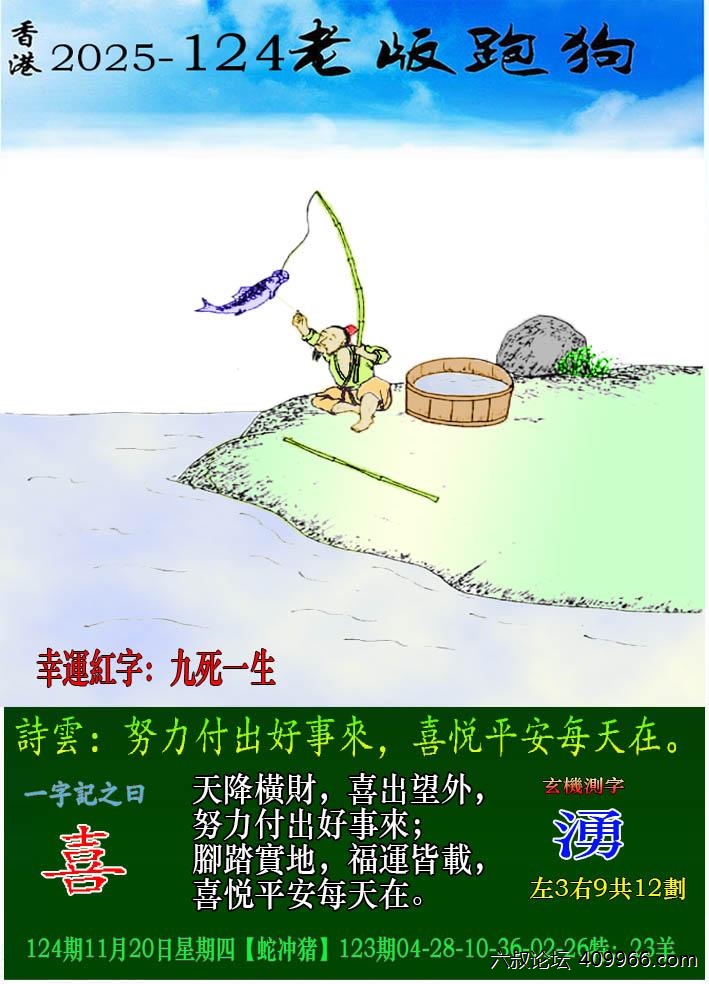 124期老版跑狗一字記之曰:【喜】 詩雲:努力付出好事來,喜悦平安每天在。