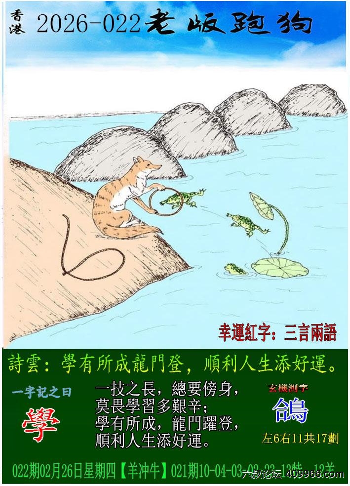 022期老版跑狗一字記之曰:【學】 詩雲:學有所成龍門登,順利人生添好運。